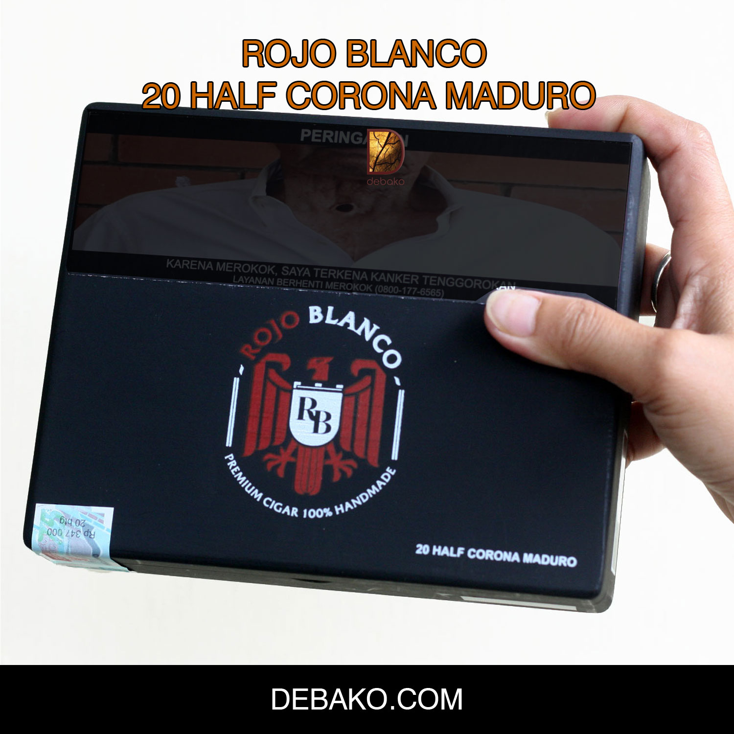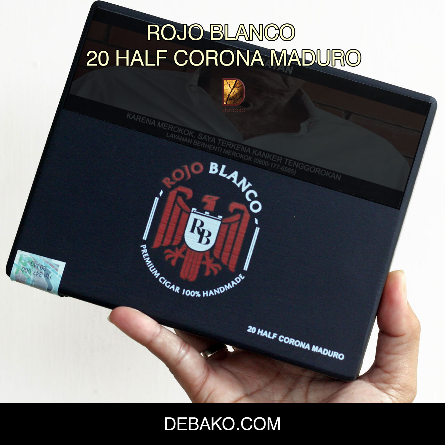 Rojo Blanco Half Corona Maduro dibungkus secara unik dengan pembungkus Maduro Indonesia kami, yang juga dikenal secara lokal sebagai tembakau Javano.